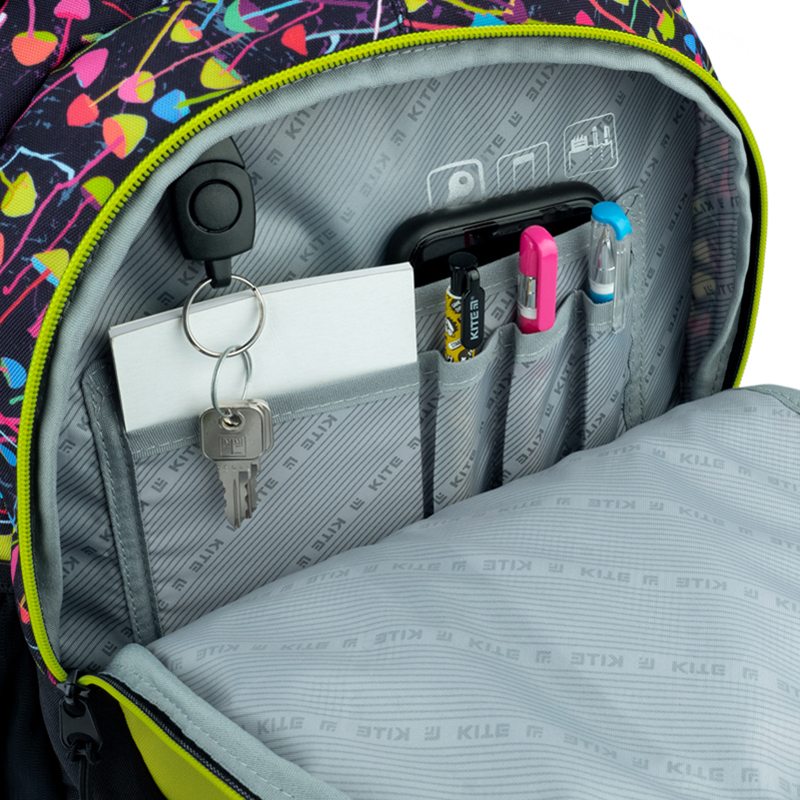 Ортопедична спинка Air Comfort, 2 відділення, 1 передня, 2 бічні кишені, відділення для планшета, внутрішні роздільники, відділення для телефону, органайзер, ключниця, знімні нагрудні ремені, підвіска з лого Кайт, світловідбиваючі елементи