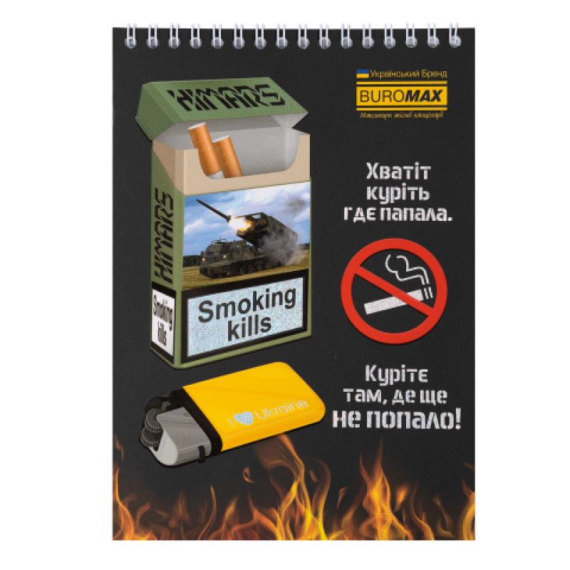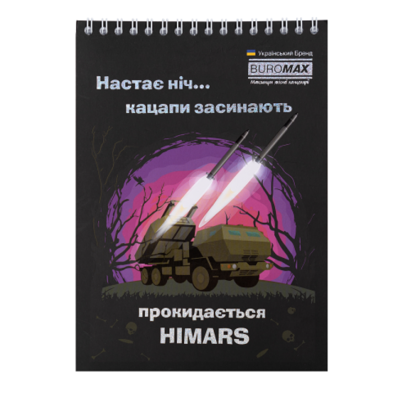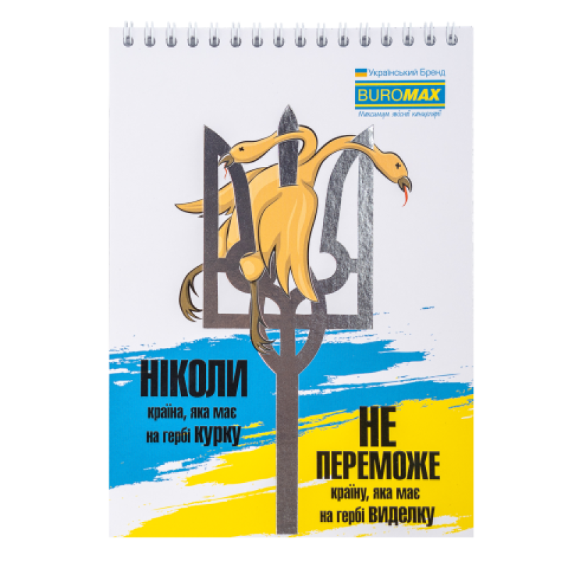Блокноти PATRIOT від BUROMAX – це актуальне рішення для збереження записів, нотаток, думок. Цікаві обкладинки, що містять мотивуючі висловлювання, спрямовані на зарядку позитивом, вірою у фортецю та перемогу, мають візуалізацію думок та мрій багатьох людей, обов'язково сподобаються широкому колу як маленьких, так і дорослих українців. Завдяки лінійці різноманітних дизайнів такий блокнот може стати приємним актуальним подарунком або незамінним другом для кожного. Формат ±А5 Кріплення зверху на металевій білій пружині дозволяє легко перевертати листи (все лягає ідеально) Лінівка клітина, без рамки 48 аркушів Внутрішній блок – офсетний папір білого кольору щільністю 55 г/м² Обкладинка з целюлозного крейдованого картону щільністю2 - Вибірковий УФ або структурний лак, тиснення фольгою в тон дизайну Групова упаковка: 8 шт. асорті дизайнів (4 дизайни) 1 гривня на ЗСУ (1 грн з купівлі цього товару ТОВ " Імпорт-Офіс Україна " перерахує до фонду " Повернись живим " )