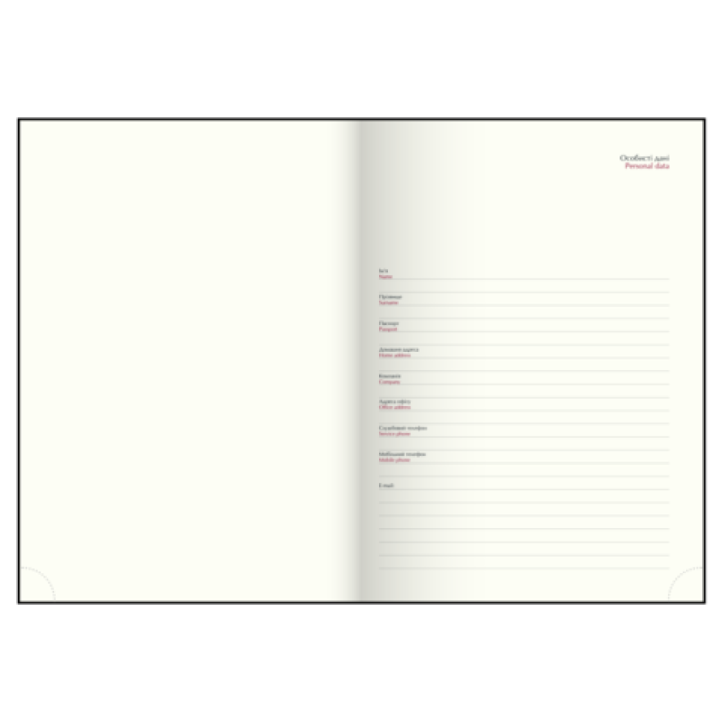 На цій моделі щоденника можливо тиснення сліпим методом (матеріал темніє під впливом температури) та методом фольгування.