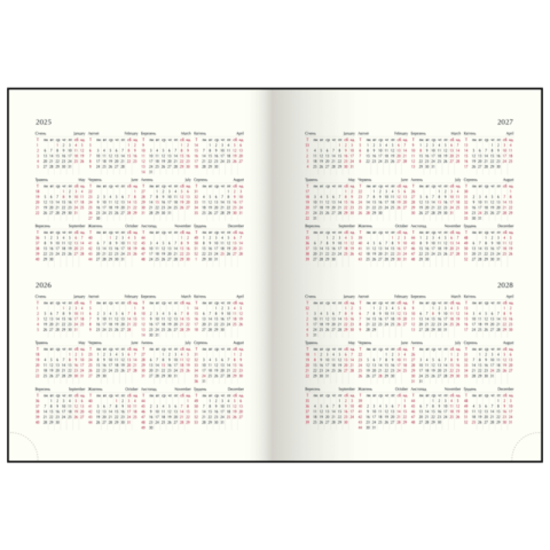 - Датована сторінка на кожен день року з організатором часу з 7:00 до 21:00