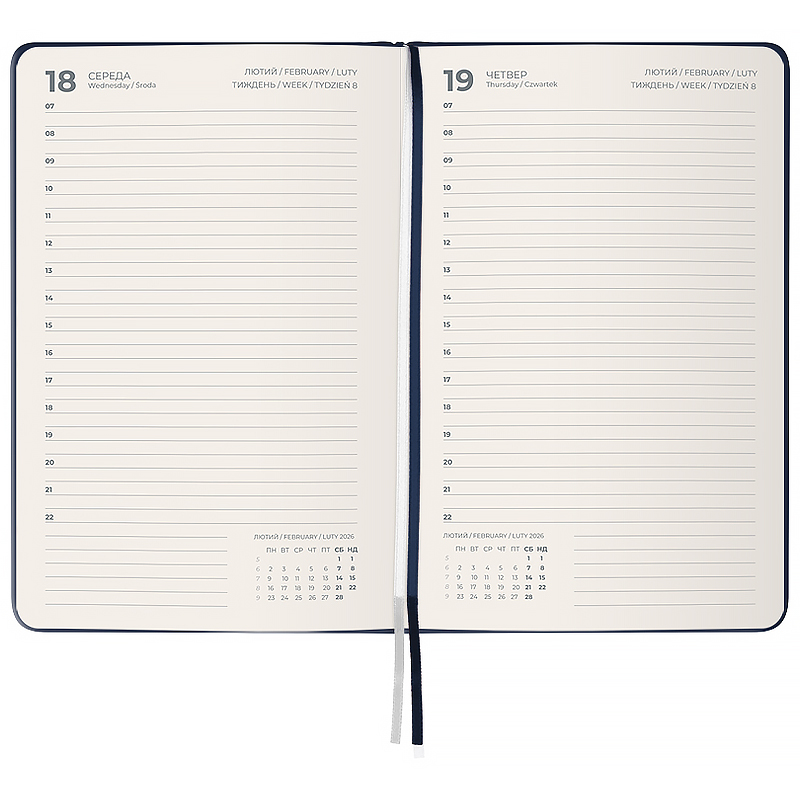 - Дві різнокольорові закладки-ляссе для швидкого пошуку сторінок