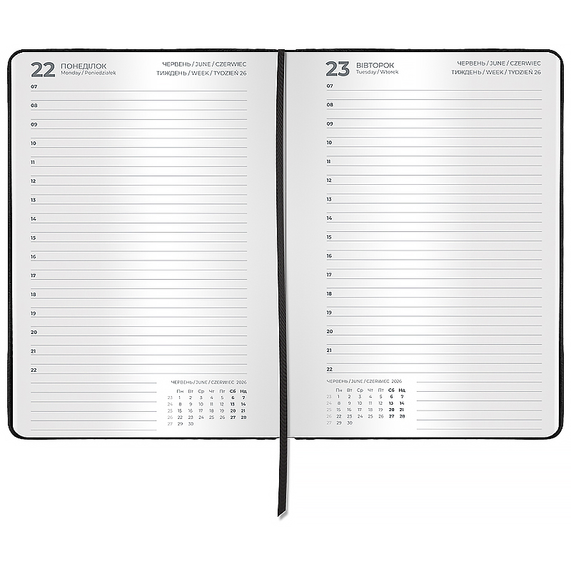 Тверда обкладинка забезпечує довговічність і презентабельний вигляд, що робить щоденник ідеальним для використання як в особистих, так і в ділових цілях.