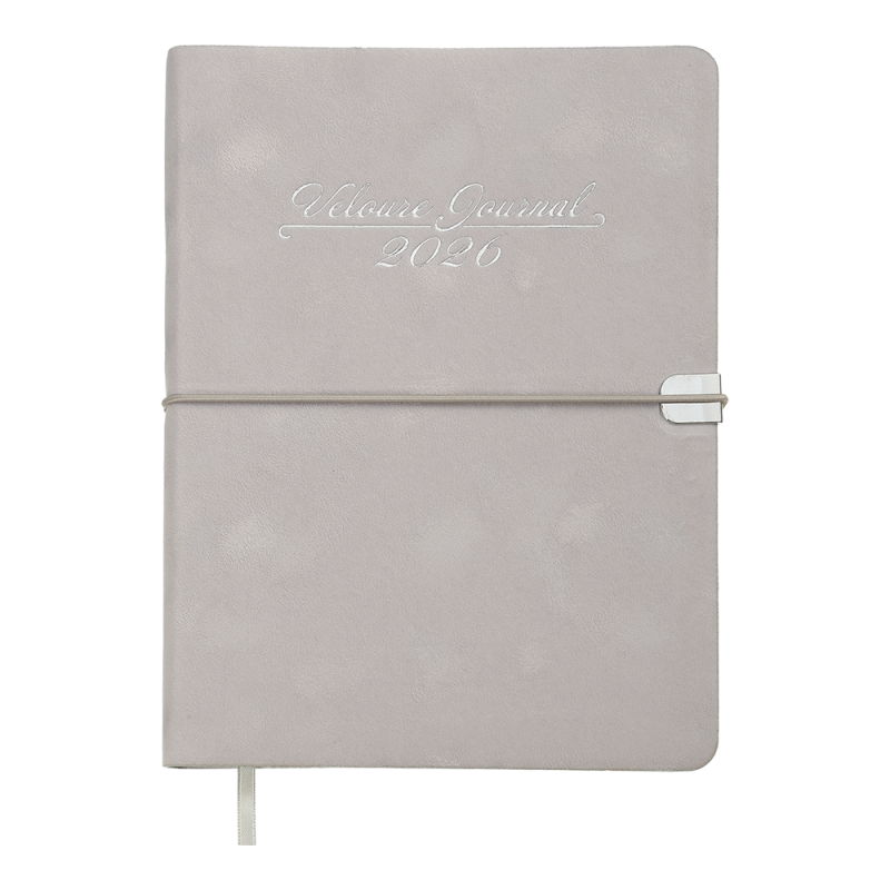 Щоденник дат. 2026 VELOUR, A5, світло-сірий, штуч. шкіра