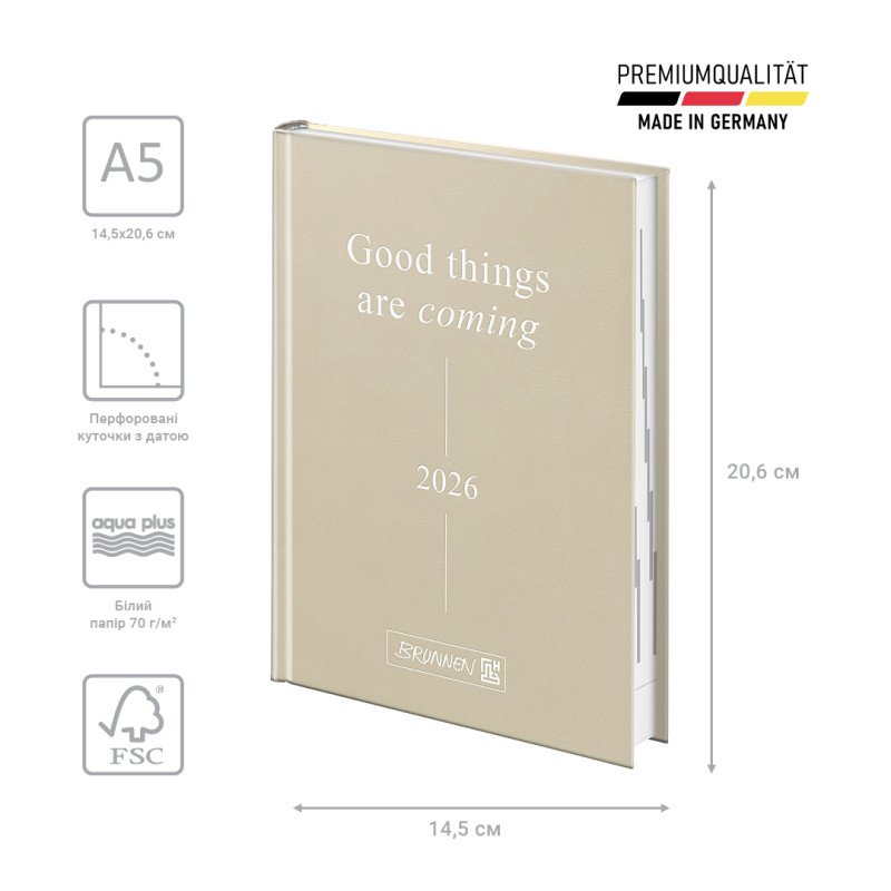 Датаційний щоденник BRUNNEN 2026 Стандарт — це стильна класична модель, ідеально підходяща для організації вашого часу.