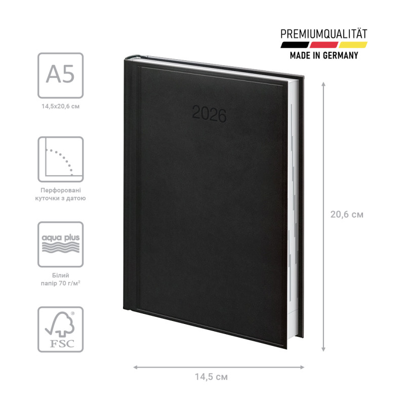 Датаційний щоденник BRUNNEN 2026 Стандарт — це стильна класична модель, яка ідеально підходить для організації вашого часу та записів. Він поєднує в собі функціональність і елегантний дизайн.