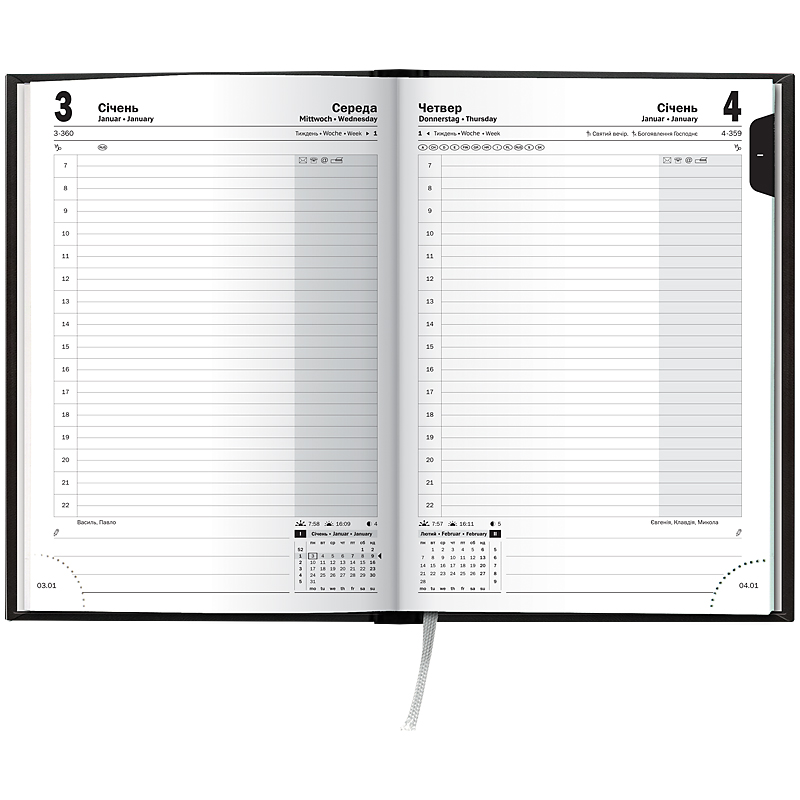 - Закладка: закладка-ляссе та відривні куточки з датою