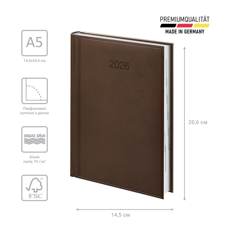 Опис: Датований щоденник BRUNNEN 2026 Стандарт — стильна класична модель, призначена для зручного та ефективного планування вашого часу.