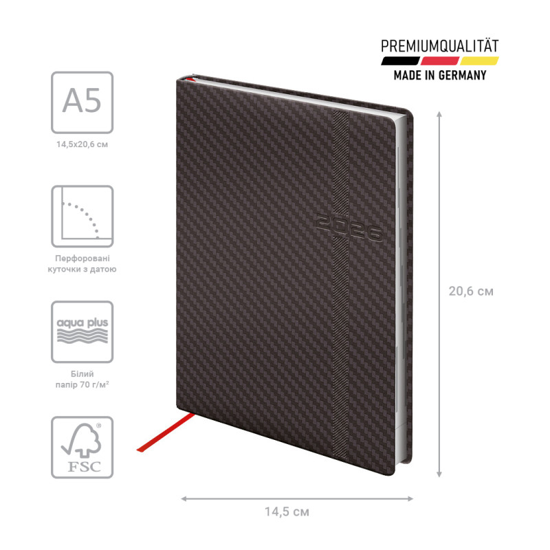 - Стильна обкладинка Soft Carbon з сліпим тисненням