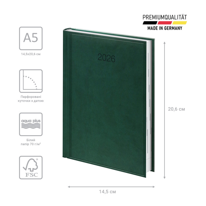 Щоденник 2026 Стандарт Torino слп/т зелений