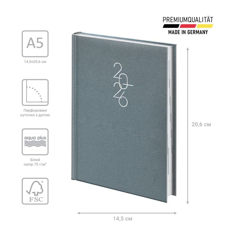 - Обкладинка: стильна обкладинка Linesse з срібним тисненням