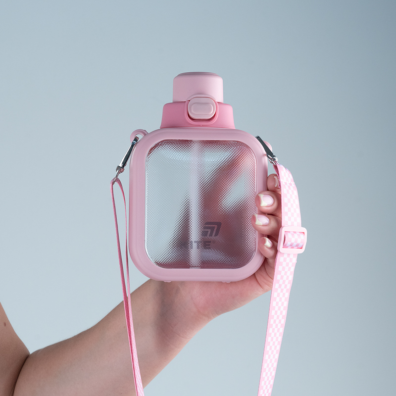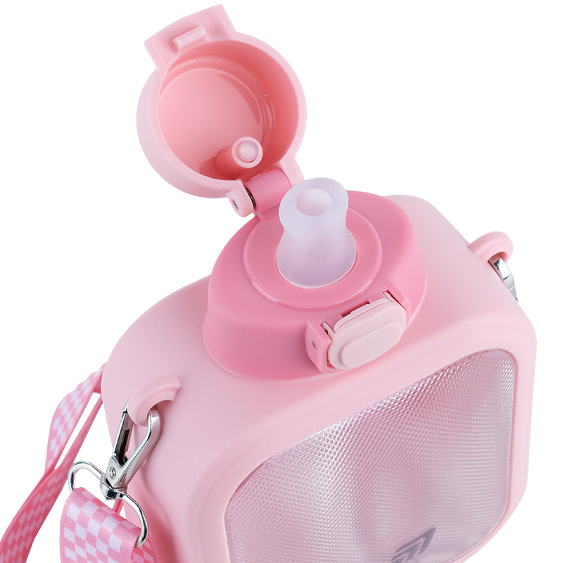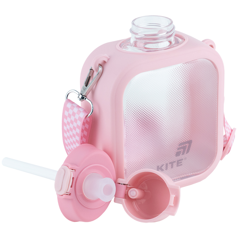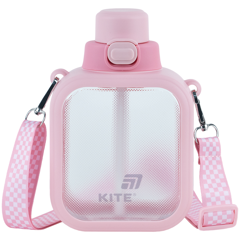 Бутилка для води Kite - це стильний та оригінальний аксесуар, який ідеально підійде для шкільних і творчих занять. З унікальною квадратною формою та гармонійним рожевим кольором, вона стане яскравим доповненням до будь-якого рюкзака.