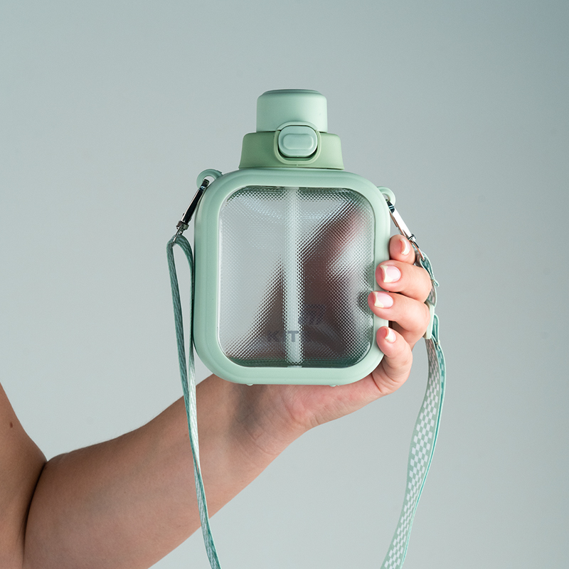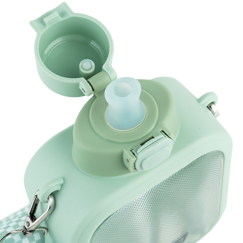 Бутилка для води Kite - стильний і оригінальний аксесуар, який ідеально підходить для використання в школі, на заняттях або під час активного відпочинку. Унікальна квадратна форма і гармонійний зелений колір роблять її привабливою і зручною.
