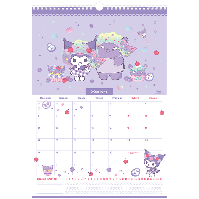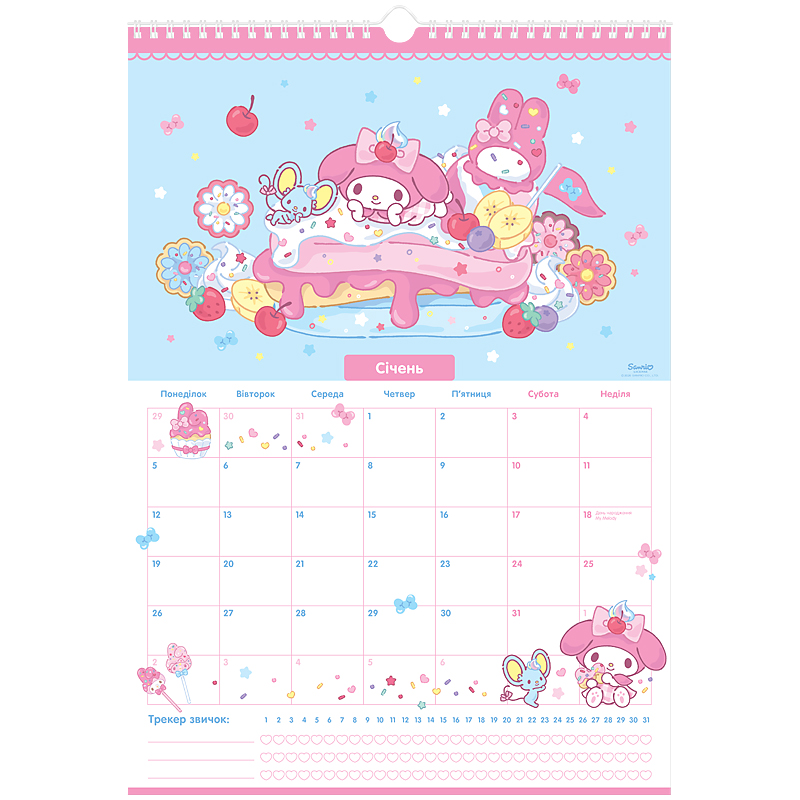 Календар оснащений сіткою-планером, в яку можна вписувати важливі події, що дозволяє вам завжди бути в курсі майбутніх справ та заходів.