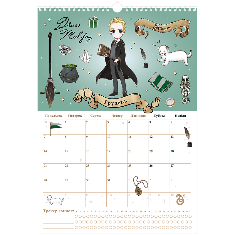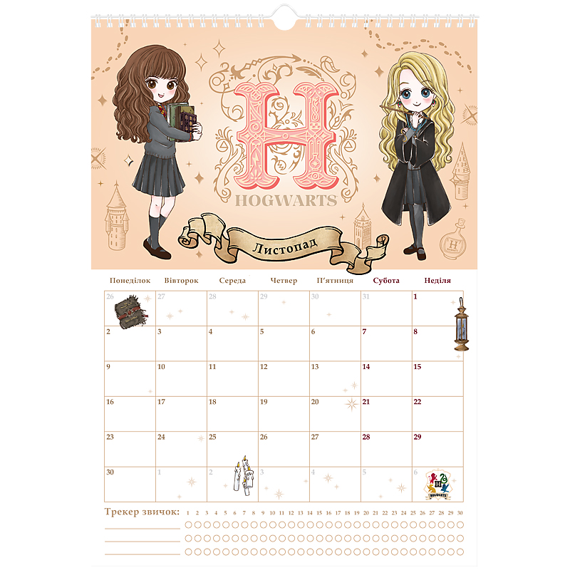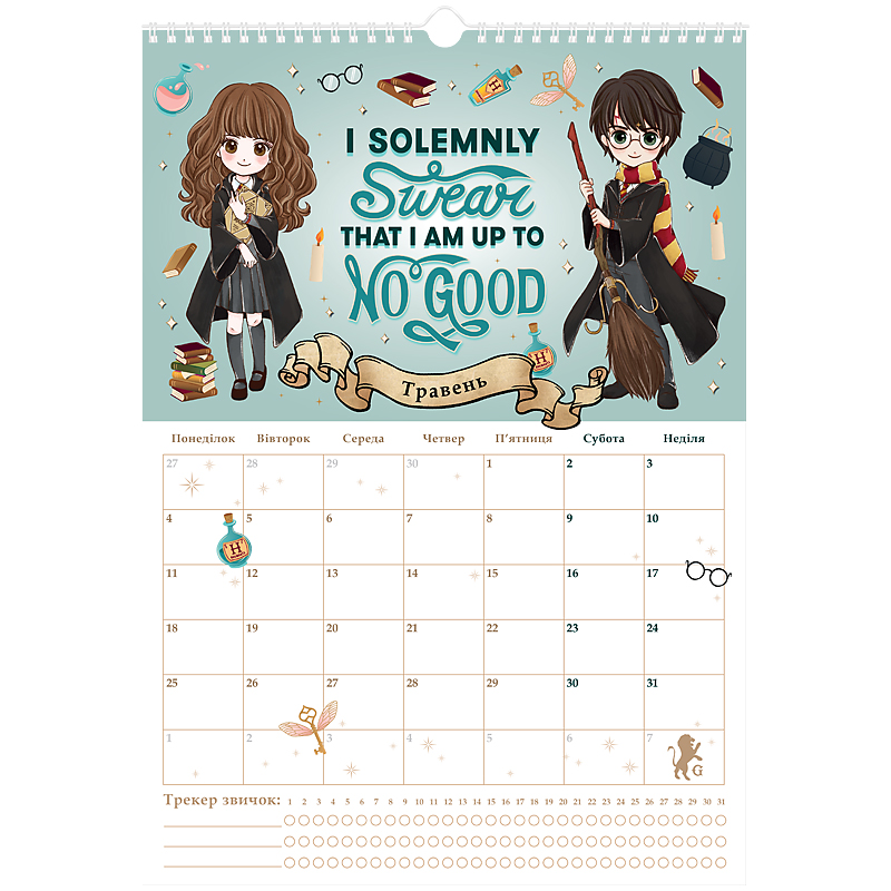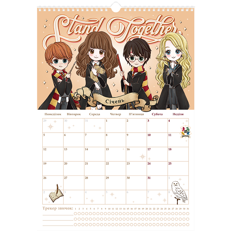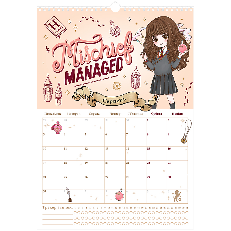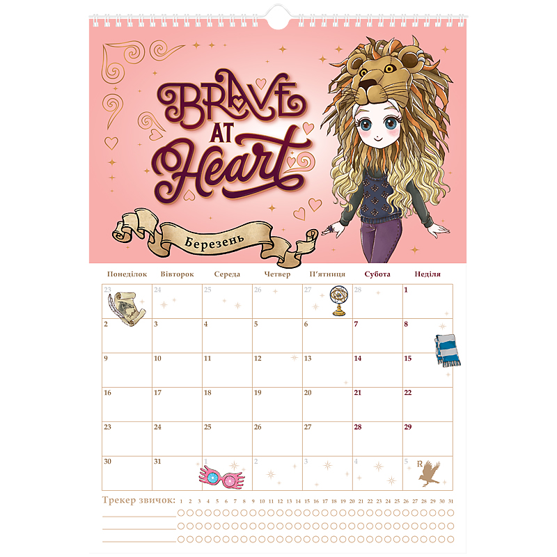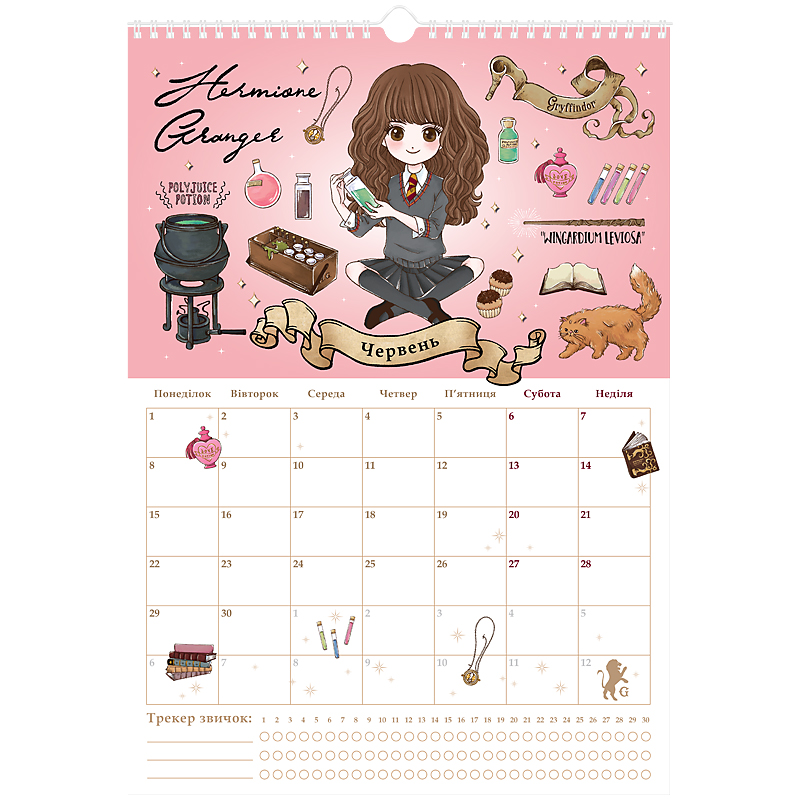 Календар обладнаний сіткою-планером, у яку зручно вписувати важливі події та завдання. Цей аксесуар стане незамінним для студентів, школярів та всіх, хто цінує порядок у своєму розкладі.