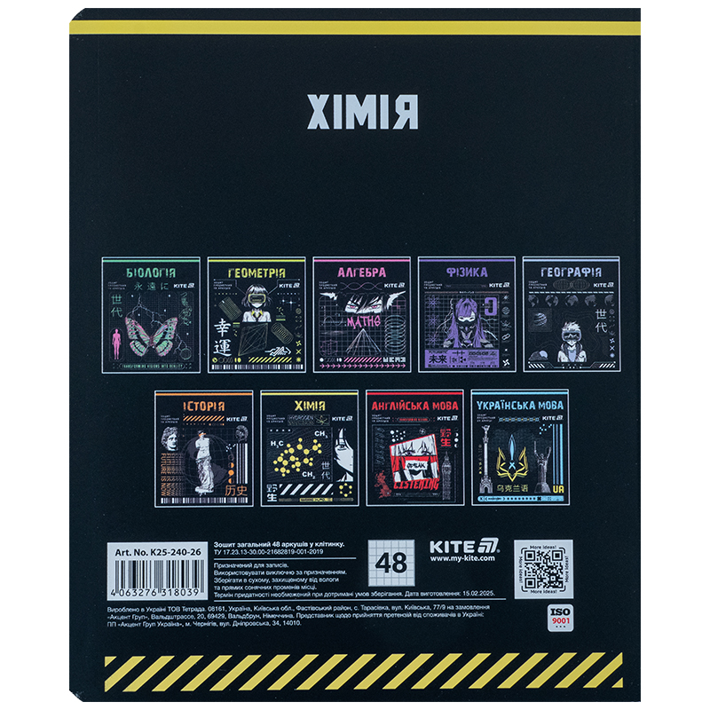 Предметний зошит 48 аркушів, клітинка, софт тач + УФ, Cyber, хі