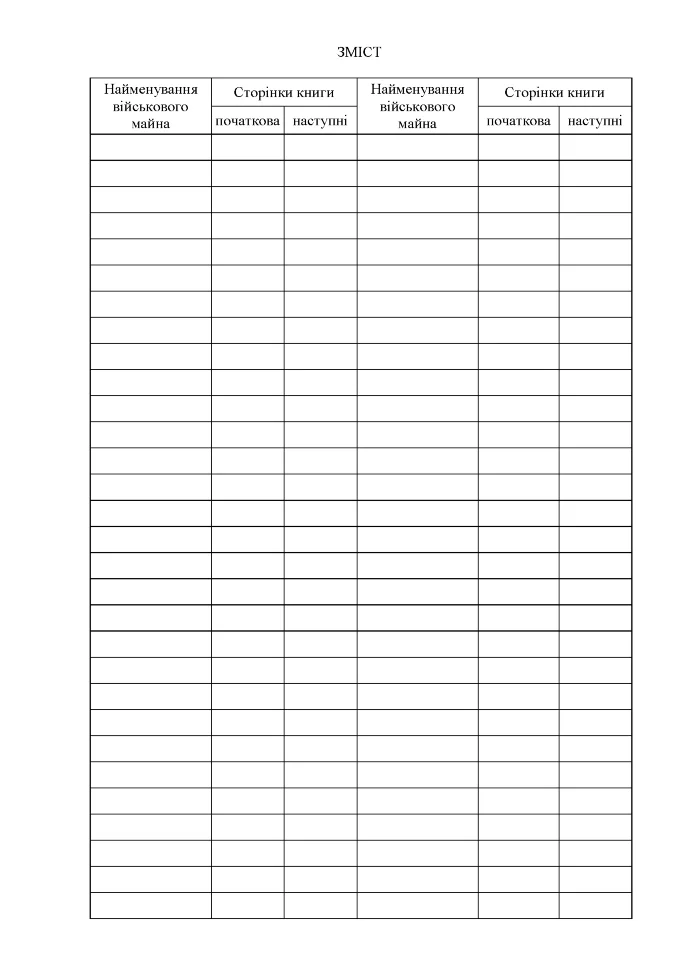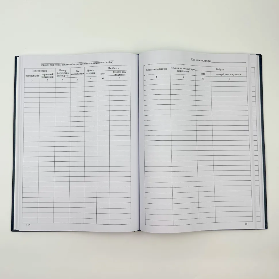 Книга призначена для обліку озброєння, військової техніки та іншого майна за номерами, марками і типами, а також для обліку закріплення цього майна за підрозділами. Ведення книги здійснюється в службі забезпечення, на складі військової частини або в структурних підрозділах центру забезпечення.