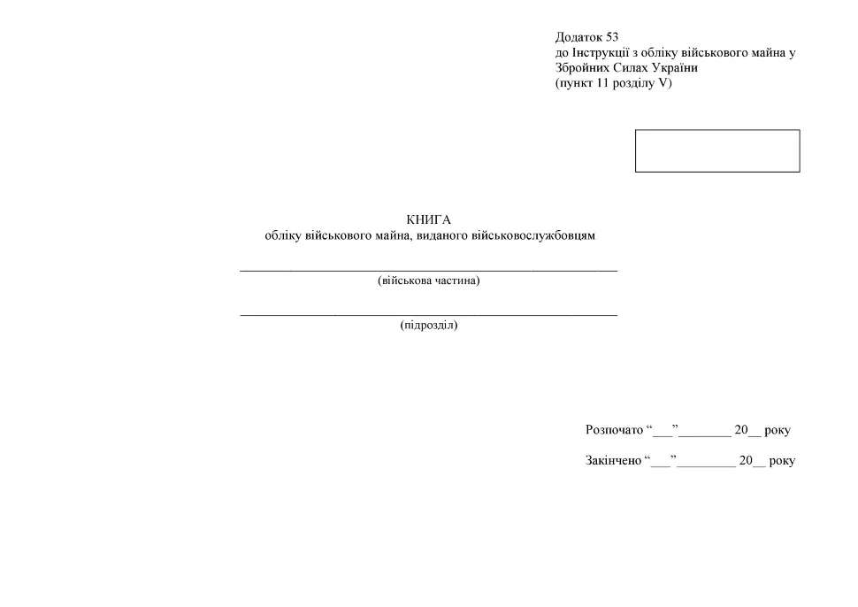 - Назва: Книга обліку військового майна, виданого військовослужбовцям