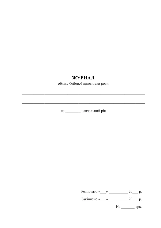 Журнал обліку бойової підготовки роти призначений для систематизації та зберігання інформації про проведення навчальних заходів, тренувань та занять. Цей журнал оформлюється на навчальний рік і ведеться командиром роти. Він зберігається в канцелярії протягом року, що йде за звітним навчальним періодом.