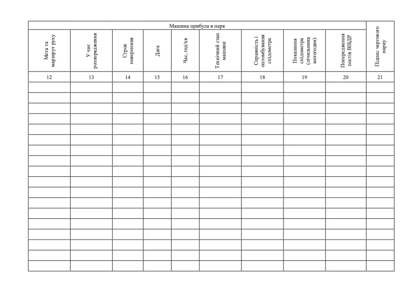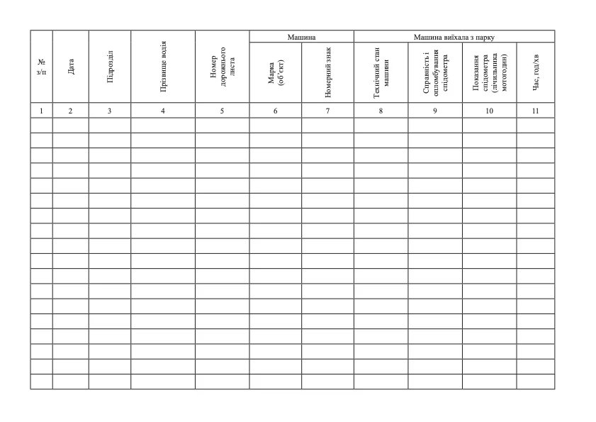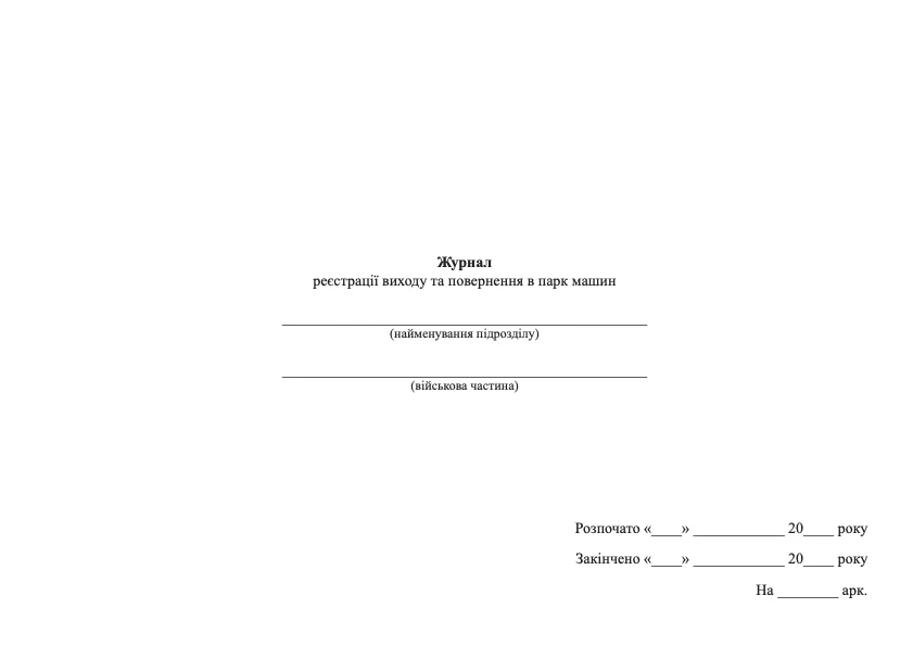 Журнал призначений для обліку руху автомобілів у парку. Він допоможе організувати роботу та забезпечити контроль за виходом і поверненням транспортних засобів.