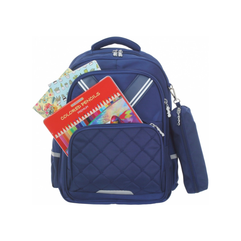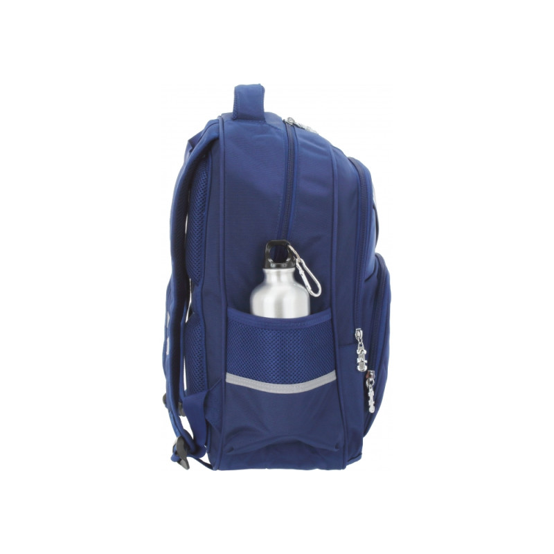 Размер: 40*29,5*14,5 см. Материал: полиэстер 600 D з PU вставками. Рекомендованная Ассоциацией ортопедов жесткая ортопедическая спинка. 1 отделение; 2 передних кармана на молнии; удобный органайзер со съемной ключницей, боковые карманы. Эргономичные S-образные лямки, светоотражающие элементы, жесткое дно, металлическая фурнитура, крепкая ручка.
