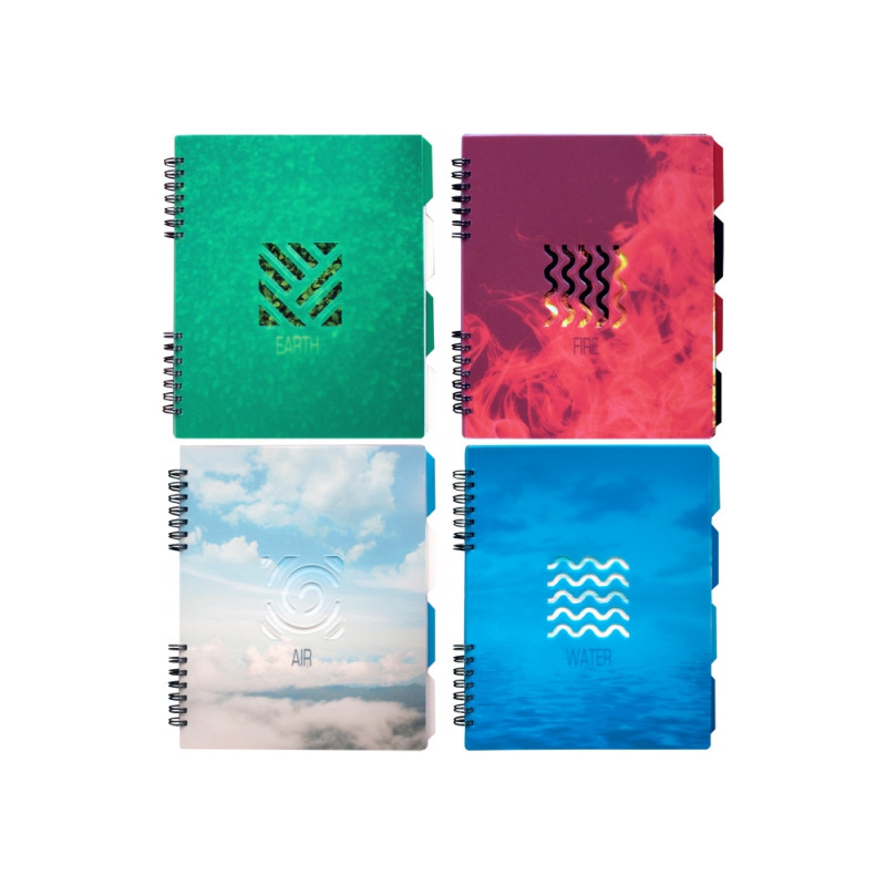 Блокнот формату B5 (170×205). Кріплення блоку – спіраль. Обкладинка – пластик. Внутрішній блок – клітина, щільність паперу – 65 г/м2, кількість листів – 120. З роздільниками блоку. Вироблено в Україні.
