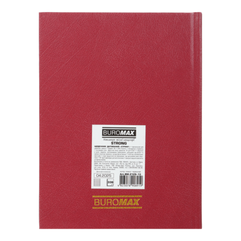 Ежедневники BUROMAX - это всегда широкий выбор самых разных обложек, фактур, цветов и форматов. Мы найдем подход к сердцу каждого покупателя! Твердая обложка ежедневника STRONG изготовлена из искусственной кожи. Дизайн обложки выдержан в строгом и лаконичном стиле, который гармонично дополняет тиснение года фольгой на лицевой стороне обложки. Эта модель станет отличным деловым аксессуаром, благодаря своему формату, элегантности и функциональности. формат А5 336 страниц Внутренний блок: бумага офсетная кремового цвета плотностью 70 г/м² Закладка-ляссе в цвет обложки поможет быстро найти необходимую страницу Печать блока в 2 цвета: серый и бордовый Два языка блока: украинский, английский Карты Украины и Европы на форзацах Индивидуальная упаковка: картонная коробка Структура внутреннего блока: Страница для внесения личной информации Календари на 2023 – 2026 годы Планинг на 2024 год Информационно-справочный блок: национальные, религиозные, профессиональные праздники и памятные даты, знаки зодиака, телефонные коды мобильных операторов и областных центров Украины, буквенные автомобильные коды стран, таблица расстояний между областными центрами Украины, справочник систем измерения, международные знаки соответствия, знаки ухода за одеждой Датированная страница на каждый день года с организатором времени от 7:00 до 21:00, календарем на текущий/следующий месяц, обозначением дня недели, знака зодиака, именинников Суббота и воскресенье - вертикальное размещение на одной странице Алфавитная книга для внесения контактов Ежедневник BUROMAX формата А5 - это выбор, проверенный временем, самый популярный формат для незаменимого помощника в планировании Вашего рабочего дня. На этой модели ежедневника возможно тиснение методом фольгирования.