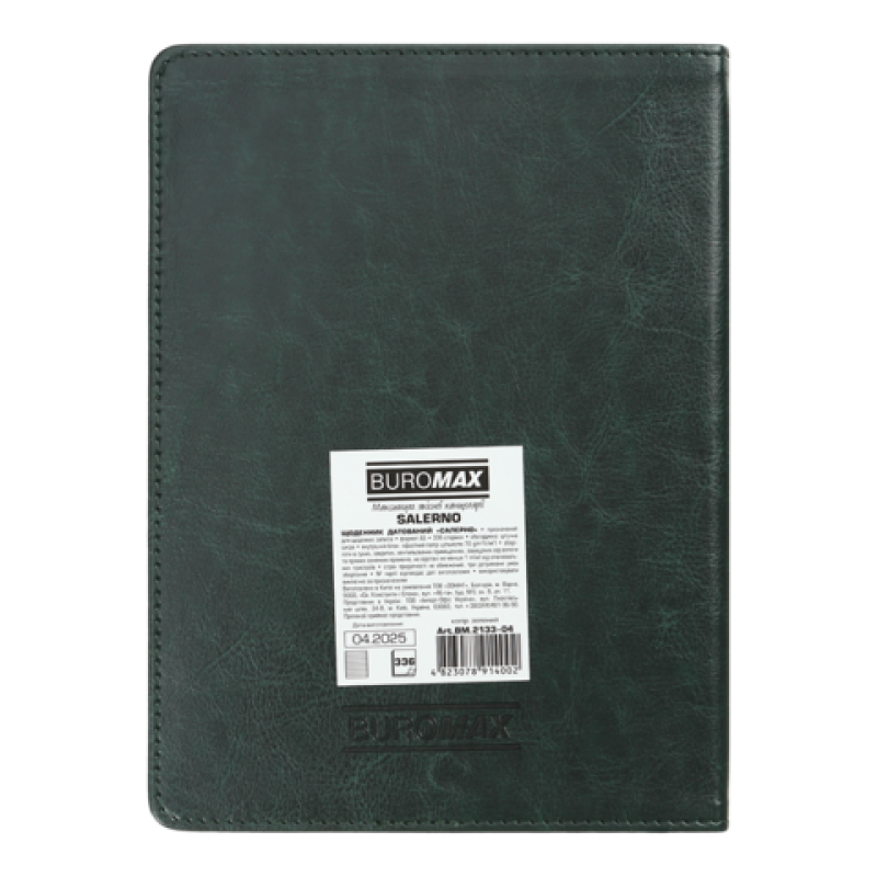 Ежедневники BUROMAX - это всегда широкий выбор самых разных обложек, фактур, цветов и форматов. Мы найдем подход к сердцу каждого покупателя! Гибкая обложка ежедневника SALERNO выполнена из гладкой искусственной кожи. Уникальной особенностью модели является металлический декор - шильда на лицевой стороне обложки. Дизайн гармонично дополняет слепое тиснение года на корешке и декоративный шов по периметру обложки. Формат А5 336 страниц Внутренний блок: бумага офсетная кремового цвета плотностью 70 г/м² Закладка-ляссе в цвет обложки поможет быстро найти необходимую страницу Печать блока в 2 цвета: серый и бордовый Два языка блока: украинский, английский Карты Украины и Европы на форзацах Индивидуальная упаковка: картонная коробка Структура внутреннего блока: Страница для внесения личной информации Календари на 2023 – 2026 годы Планинг на 2024 год Информационно-справочный блок: национальные, религиозные, профессиональные праздники и памятные даты, знаки зодиака, телефонные коды мобильных операторов и областных центров Украины, буквенные автомобильные коды стран, таблица расстояний между областными центрами Украины, справочник систем измерения, международные знаки соответствия, знаки ухода за одеждой Датированная страница на каждый день года с организатором времени от 7:00 до 21:00, календарем на текущий/следующий месяц, обозначением дня недели, знака зодиака, именинников Суббота и воскресенье - вертикальное размещение на одной странице Алфавитная книга для внесения контактов Ежедневник BUROMAX формата А5 - это выбор, проверенный временем, самый популярный формат для незаменимого помощника в планировании Вашего рабочего дня. На этой модели ежедневника возможно тиснение как слепым методом, так и методом фольгирования.