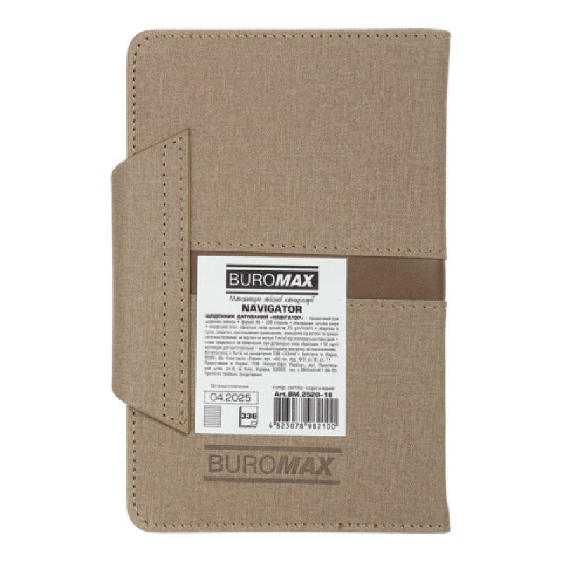 Ежедневники BUROMAX - это всегда широкий выбор самых разных обложек, фактур, размеров и цветов. Мы найдем подход к сердцу каждого покупателя! Жесткая обложка ежедневника NAVIGATOR выполнена из искусственной кожи с поролоном. Благодаря широкой застежке на магните, ежедневник можно легко и быстро зафиксировать в закрытом состоянии. Оригинальности ежедневнику добавляет комбинация фактур и цветов искусственной кожи на обложке, а также оформление декоративными швами по периметру обложки и на стыке материалов. Дизайн гармонично дополняет тонированный срез в цвет обложки, а также слепое тиснение года. Формат А6 336 страниц Внутренний блок: офсетная бумага кремового цвета плотностью 70 г/м² Закладка-ляссе в цвет обложки Перфорированные уголки листов Печать блока в 2 цвета: серый и бордовый Два языка блока: украинский, английский Карты Украины и Европы на форзацах Индивидуальная упаковка: картонная коробка Структура внутреннего блока: Страница для внесения личной информации Календари на 2024 – 2027 годы Планинг на 2025 год Информационно справочный блок: национальные, религиозные, профессиональные праздники и памятные даты, знаки зодиака, телефонные коды мобильных операторов и областных центров Украины, буквенные автомобильные коды стран, таблица расстояний между областными центрами Украины, справочник систем измерения, международные знаки соответствия, знаки ухода за одеждой Датированная страница на каждый день года с организатором времени с 7:00 до 21:00, календарем на текущий/следующий месяц, обозначением дня недели, знака зодиака, именинников Алфавитная книга для внесения контактов Ежедневник BUROMAX - незаменимый помощник в планировании Вашего рабочего дня, проверенный временем! На этой модели ежедневника возможно тиснение как слепым методом, так и методом фольгирования.