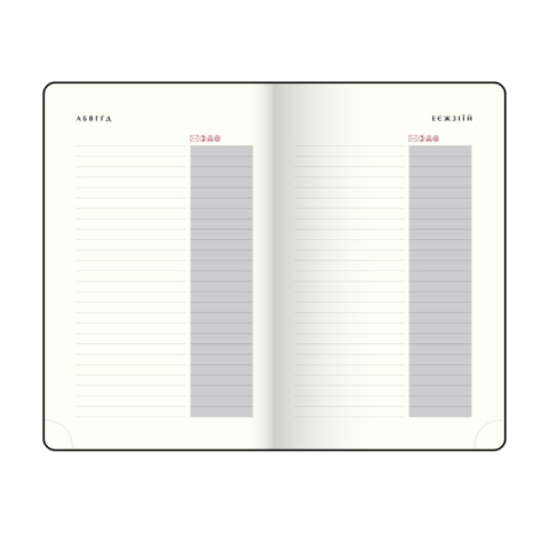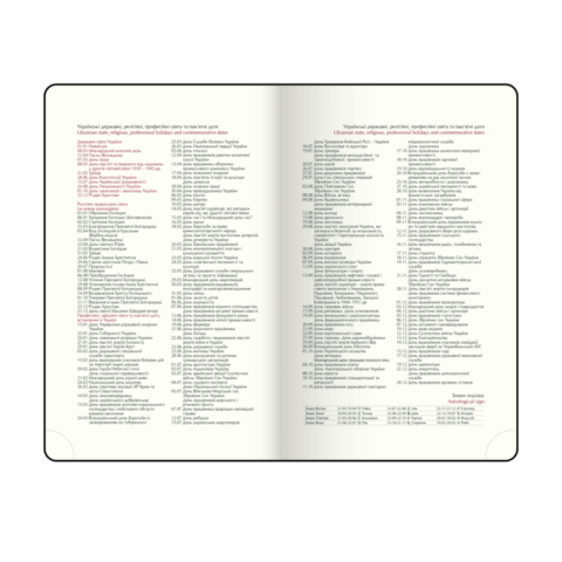 Ежедневники BUROMAX - это всегда широкий выбор самых разных обложек, фактур, размеров и цветов. Мы найдем подход к сердцу каждого покупателя! Гибкая обложка ежедневника VELOUR выполнена из искусственной кожи с интенсивным бархатным покрытием. Две функциональные шильды на лицевой и оборотной стороне обложки с углублениями для поперечной резинки, обеспечивают удобную и надежную фиксацию ежедневника в закрытом состоянии. Дизайн гармонично дополняет и обогащает тонированный серебряным цветом срез внутреннего блока и тиснение серебряной фольгой года и надписи на лицевой стороне обложки. Формат А6 336 страниц Внутренний блок: офсетная бумага кремового цвета плотностью 70 г/м² Закладка-ляссе в цвет обложки Перфорированные уголки листов Печать блока в 2 цвета: серый и бордовый Два языка блока: украинский, английский Карты Украины и Европы на форзацах Индивидуальная упаковка: картонная коробка Структура внутреннего блока: Страница для внесения личной информации Календари на 2024 – 2027 годы Планинг на 2025 год Информационно справочный блок: национальные, религиозные, профессиональные праздники и памятные даты, знаки зодиака, телефонные коды мобильных операторов и областных центров Украины, буквенные автомобильные коды стран, таблица расстояний между областными центрами Украины, справочник систем измерения, международные знаки соответствия, знаки ухода за одеждой Датированная страница на каждый день года с организатором времени с 7:00 до 21:00, календарем на текущий/следующий месяц, обозначением дня недели, знака зодиака, именинников Алфавитная книга для внесения контактов Ежедневник BUROMAX - незаменимый помощник в планировании Вашего рабочего дня, проверенный временем! На этой модели ежедневника возможно тиснение слепым методом и методом фольгирования.