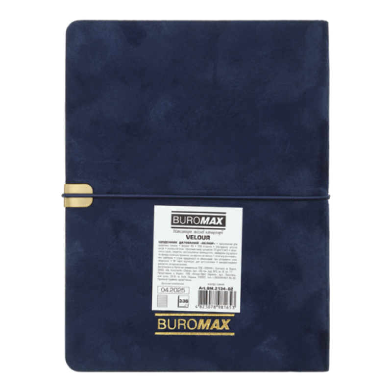 Ежедневники BUROMAX - это всегда широкий выбор самых разных обложек, фактур, размеров и цветов. Мы найдем подход к сердцу каждого покупателя! Гибкая обложка ежедневника VELOUR выполнена из искусственной кожи с интенсивным бархатным покрытием. Две функциональные шильды на лицевой и оборотной стороне обложки с углублениями для поперечной резинки, обеспечивают удобную и надежную фиксацию ежедневника в закрытом состоянии. Дизайн гармонично дополняет и обогащает тонированный золотым цветом срез внутреннего блока и тиснение золотой фольгой года и надписи на лицевой стороне обложки. Формат А5 336 страниц Внутренний блок: офсетная бумага кремового цвета плотностью 70 г/м² Закладка-ляссе в цвет обложки Перфорированные уголки листов Печать блока в 2 цвета: серый и бордовый Два языка блока: украинский, английский Карты Украины и Европы на форзацах Индивидуальная упаковка: картонная коробка Структура внутреннего блока: Страница для внесения личной информации Календари на 2024 – 2027 годы Планинг на 2025 год Информационно справочный блок: национальные, религиозные, профессиональные праздники и памятные даты, знаки зодиака, телефонные коды мобильных операторов и областных центров Украины, буквенные автомобильные коды стран, таблица расстояний между областными центрами Украины, справочник систем измерения, международные знаки соответствия, знаки ухода за одеждой Датированная страница на каждый день года с организатором времени с 7:00 до 21:00, календарем на текущий/следующий месяц, обозначением дня недели, знака зодиака, именинников Алфавитная книга для внесения контактов Ежедневник BUROMAX формата А5 – это выбор, проверенный временем, самый популярный формат для незаменимого помощника в планировании Вашего рабочего дня! На этой модели ежедневника возможно тиснение слепым методом и методом фольгирования.