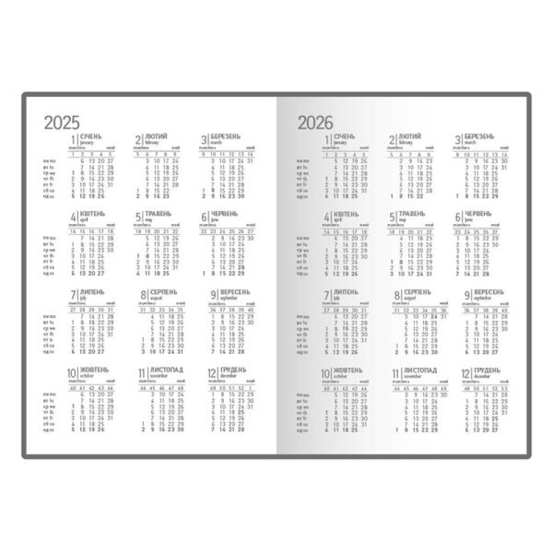 Обложка выполнена из гибкой искусственной кожи с кнопкой, что придает ежедневнику элегантный вид и обеспечивает надежную защиту страниц.