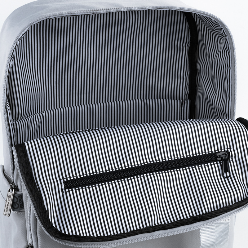 Рюкзак снаружи: Уплотненная спинка; 1 отделение; 2 передних кармана; 2 боковых кармана; 2 текстильные петли; уплотненное дно; скрытый карман на спинке; износостойкие молнии, надежная фурнитура. Рюкзак внутри: 5 внутренних карманов; отделение для ноутбука, карман для телефона