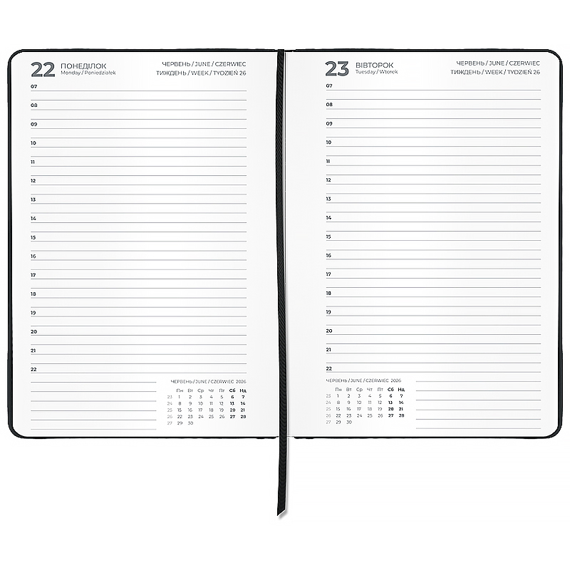Ежедневник Axent из серии Classic Palermo в твердой обложке. Используется для ежедневных записей, а также деловых и творческих задач. Твердая обложка помогает сохранить аккуратный и презентабельный вид в течение долгого времени. Качественная белая бумага плотностью 70 г/м2. Ежедневник имеет датированный блок в линию на каждый день. Внутренний блок на украинском языке. Ежедневник содержит календарь на 2026-2027 год, общее недельное расписание, информацию о праздниках, важные номера телефонов, часовые пояса стран мира, единицы измерения, шкалу температур. Закладка-ляссе позволит быстро найти и открыть нужные страницы. Содержит 168 листов, размер - 145*210 мм. Слепое тиснение года на обложке.