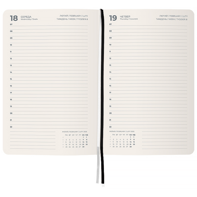 Удобный ежедневник Axent из серии Partner City в мягкой обложке с серебряным срезом. Используется для ежедневных записей, а также деловых и творческих задач. Мягкая обложка помогает сохранить аккуратный и презентабельный вид в течение долгого времени. Качественная кремовая бумага плотностью 80 г/м2 хорошо впитывает чернила и обеспечивает комфортное письмо. Удобно делать записи, чертить и рисовать. Ежедневник имеет датированный блок в линию на каждый день. Внутренний блок на украинском языке. Ежедневник содержит календарь на 2026-2027 год, общее недельное расписание, информацию о праздниках, важные номера телефонов, часовые пояса стран мира, единицы измерения, шкалу температур. Две разноцветные закладки-ляссе позволяют быстро найти и открыть нужные страницы. Содержит 168 листов, размер - 145*210 мм. Кармана на форзаце нет. Кармана на форзаце нет. Нет тесьмы на обложке и петли для ручки.
