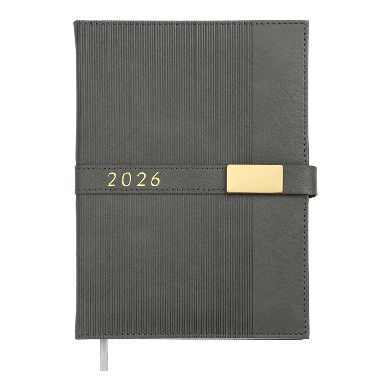 Щоденник датов. 2026 LEROY, A5, сірий, штуч.шкіра