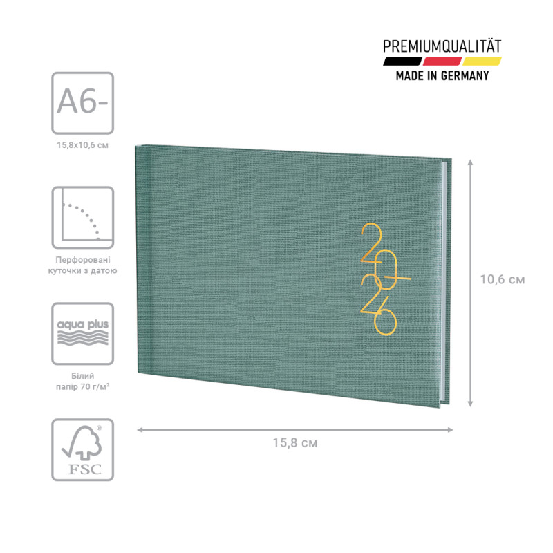 Еженедельник 2026 карманный Linesse морской зеленый