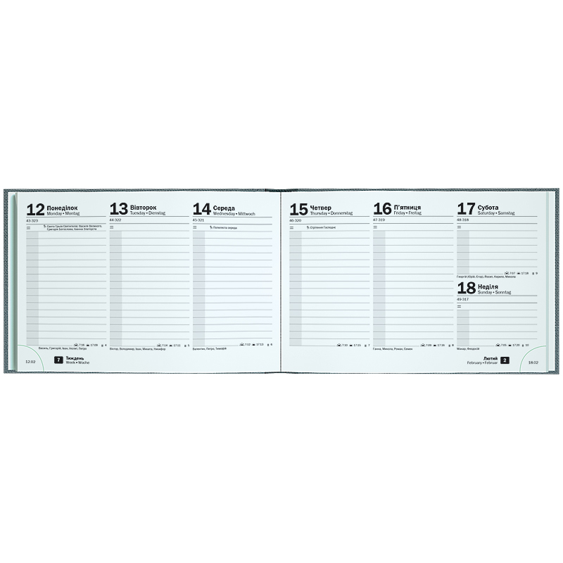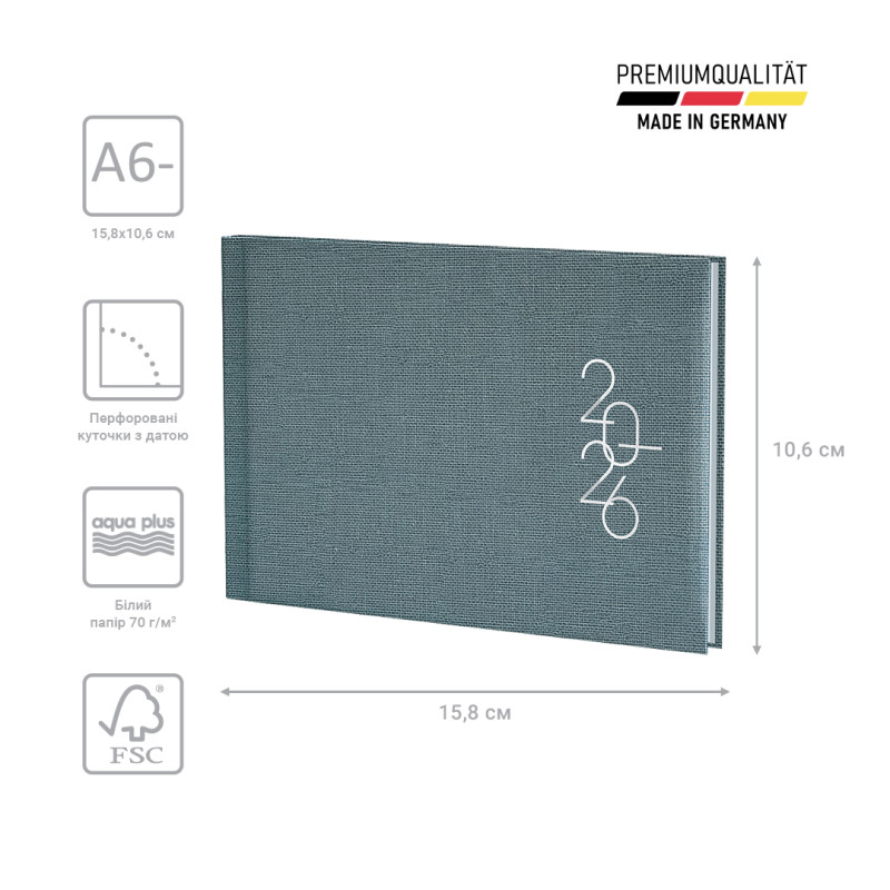 Еженедельник 2026 карманный Brunnen – стильный и компактный инструмент для планирования. Особенности: Три языка: украинский, английский, немецкий. Карманный формат А6-. Две страницы – одна неделя. Информационный блок. Перфорированные датированные уголки. Качественная печать в сером цвете. Перфорированные страницы в конце. Алфавитная записная книга. Изысканные кремовые форзацы. Крепление по вертикали. Страницы общего планирования на год. Стильная обложка Linesse. Серебряное тиснение.