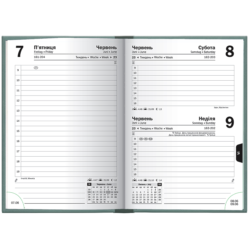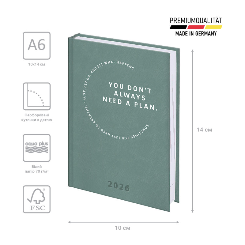 Ежедневник датированный карманный Brunnen 2026 – компактная модель для активных личностей. Гармоничное сочетание консервативного внутреннего блока и стильной обложки. Компактный формат А6. Три языка: украинский, английский, немецкий. Кремовые форзацы. 1 страница – 1 день. Суббота и воскресенье на одной странице. Организатор с 09:00 до 19:00. Информационный блок. Перфорированные датированные уголки. Качественная печать в сером цвете. Страницы общего планирования на месяц. Календари на 2026 и 2027 гг. Белая бумага 70 г/м². Отрывные странички с перфорацией для записей. Обложка Torino Trend. Белое тиснение.