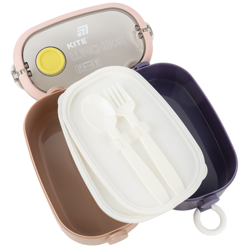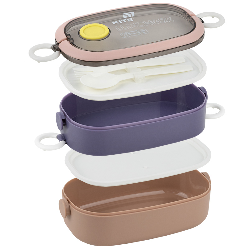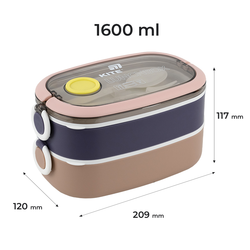 Ланчбокс двойной Kite K25-1181 1600 мл - универсальный и вместительный контейнер для полноценного обеда. Идеален для школы, офиса, прогулок, пикников и путешествий. Благодаря двум отделениям с дополнительными крышками, вы сами решаете, сколько взять с собой: одну емкость или обе сразу. Особенности: - общий объем 1600 мл - для сытного обеда на весь день; - 2 основные отделения с дополнительными крышками - удобно разделять блюда; - можно регулировать объем - использовать одну или две емкости; - безопасный пищевой пластик без BPA - не впитывает запахов, не влияет на вкус; - прозрачная верхняя крышка с клапаном - удобно разогревать в микроволновке; - прочные боковые защелки - все плотно закрыто; - ложка и вилка в комплекте - не нужно брать отдельные столовые приборы; - подходит для хранения в холодильнике и мытья в посудомоечной машине; - размер 20,9х12х11,7 см.