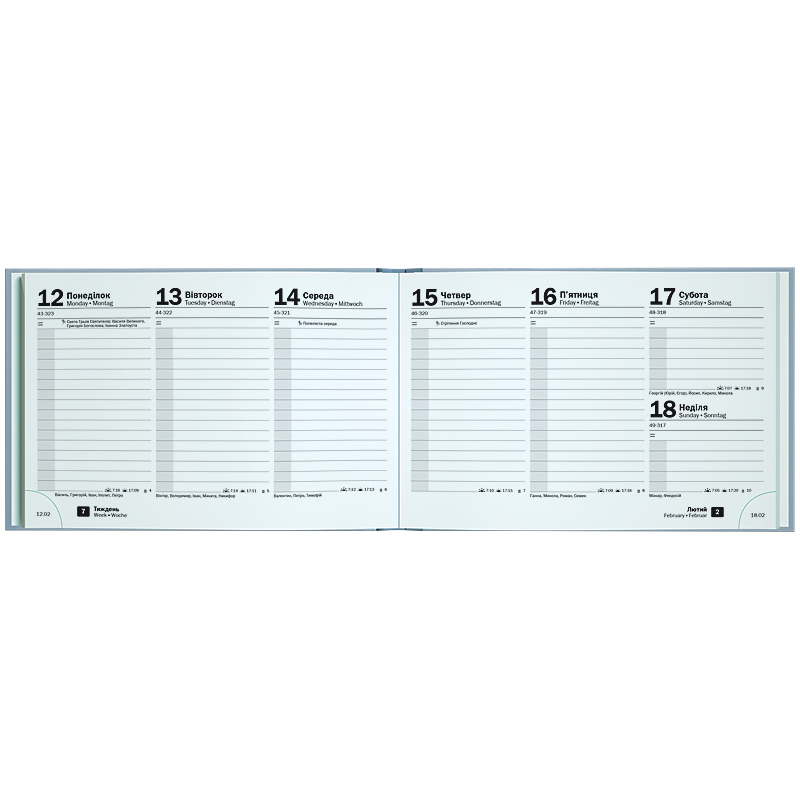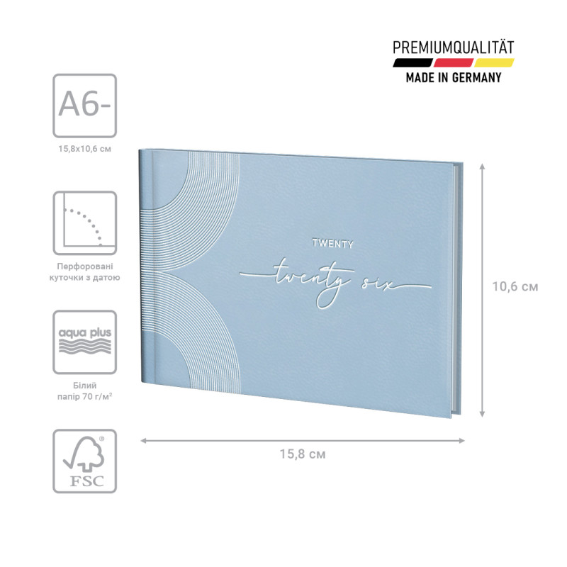 Еженедельник 2026 карманный Brunnen – стильный и компактный инструмент для планирования. Особенности: Три языка: украинский, английский, немецкий. Карманный формат А6-. Две страницы – одна неделя. Информационный блок. Перфорированные датированные уголки. Качественная печать в сером цвете. Перфорированные страницы в конце. Алфавитная записная книга. Изысканные кремовые форзацы. Крепление по вертикали. Страницы общего планирования на год. Стильная обложка Torino Trend. Белое тиснение.