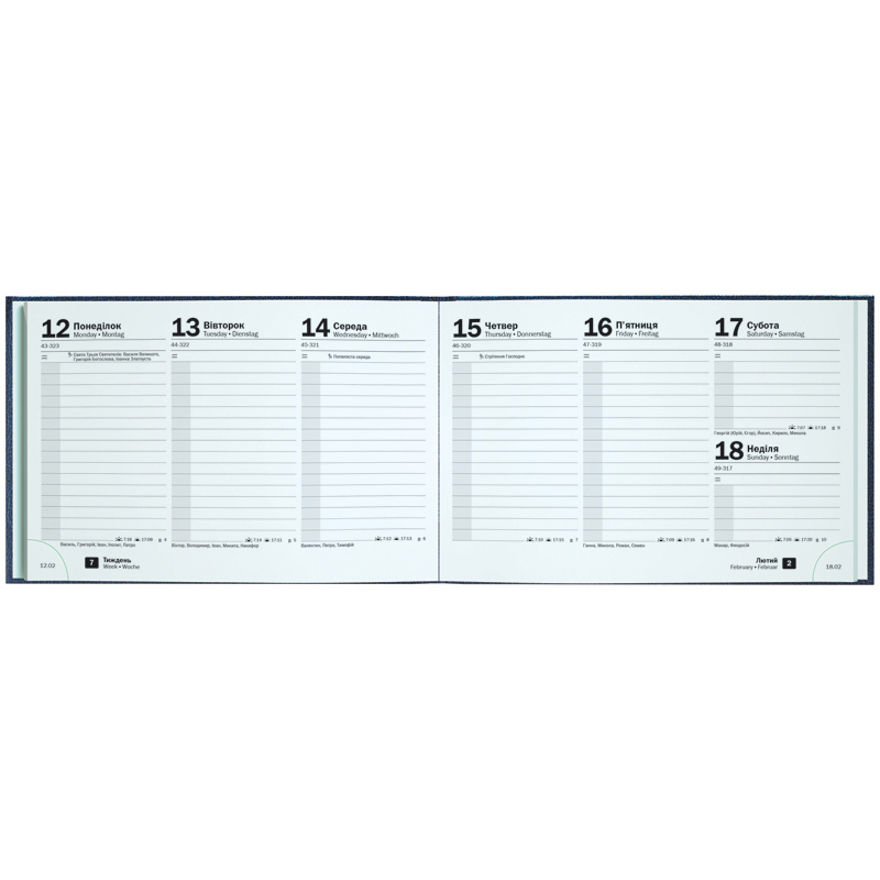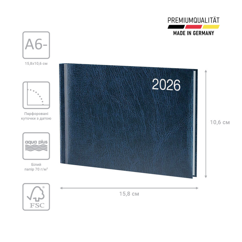 Еженедельник 2026 карманный Brunnen – стильный и компактный инструмент для планирования. Особенности: Три языка: украинский, английский, немецкий. Карманный формат А6-. Две страницы – одна неделя. Информационный блок. Перфорированные датированные уголки. Качественная печать в сером цвете. Перфорированные страницы в конце. Алфавитная записная книга. Изысканные кремовые форзацы. Крепление по вертикали. Страницы общего планирования на год. Стильная обложка Miradur. Серебряное тиснение.