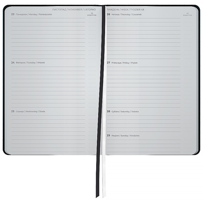 Еженедельник Axent формата А5- из серии Traces с твердой обложкой. Используется для ежедневных записей, а также деловых и творческих задач. Твердая обложка из PU-материала помогает сохранить аккуратный и презентабельный вид в течение долгого времени. Качественная кремовая бумага плотностью 80 г/м2 хорошо впитывает чернила и обеспечивает комфортное письмо. Удобно делать записи, чертить и рисовать. Еженедельник разделен на 2 части - датированный блок в линию для удобного планирования дел и дополнительные страницы в клеточку для ведения личных записей. Внутренний блок на украинском языке. Планер содержит календарь на 2026-2027 год, общее недельное расписание, информацию о праздниках, важные номера телефонов, часовые пояса стран мира, единицы измерения, шкалу температур. Две разноцветные закладки-ляссе позволяют быстро найти и открыть нужные страницы. Содержит 96 листов, размер - 125*195 мм. Кармана на форзаце нет. Нет тесьмы на обложке и петли для ручки.