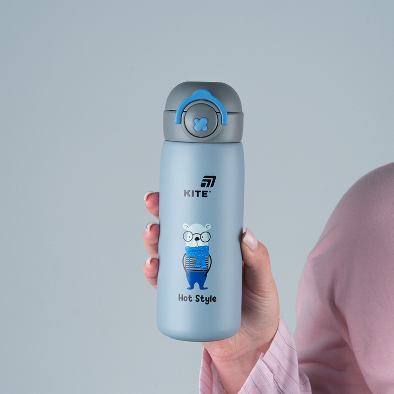 Термос Kite с кнопкой открытия и стильным дизайном. Особенности: - объем 430 мл - больше любимого напитка на целый день; - сохраняет температуру до 6 часов - теплый напиток остается теплым, прохладный - прохладным; - изготовлен из нержавеющей стали AISI 304 - безопасный, прочный, не влияет на вкус; - герметичный силиконовый уплотнитель - никакого проливания; - удобный поильник - пить комфортно и приятно; - металлическая сеточка - для ягодного или фруктового напитка; - кнопка открытия с фиксатором - легко открыть, надежно держится закрытым во время транспортировки; - внешние стенки не нагреваются - термос безопасно держать в руках; - ручка-петля из паракорда - удобно носить; - яркий дизайн и приятная на ощупь матовая поверхность - вызывает улыбку и выделяется среди других; - эстетичная подарочная картонная коробка - выглядит эффектно: бери и дари! - размер 8х6,8х20,5 см. Рекомендовано не наливать кипяток или подождать минуту перед закрыванием крышки, чтобы избежать избыточного давления из-за выделения пара