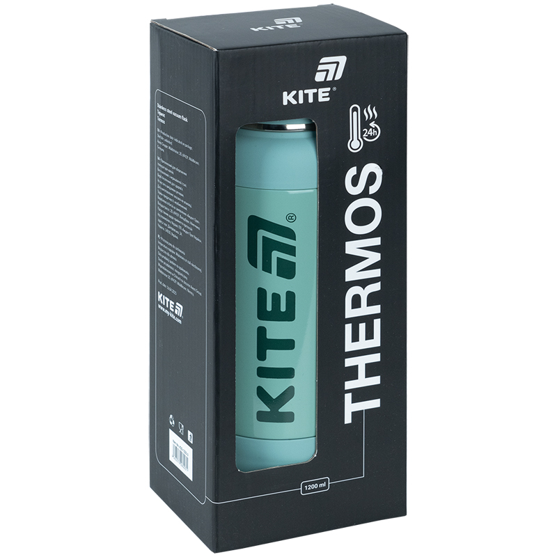 Термос Kite с вместительным объемом 1200 мл. Долго сохраняет температуру - до 24 часов. Особенности: - объем 1200 мл - достаточно для целого дня; - удерживает температуру до 24 часов - напиток остается именно таким, как вы любите; - крышка-чашка - удобно пить где угодно; - металлическая сеточка-фильтр - для компота, компота, узвара, травяного чая; - удобный поильник - пить можно прямо из термоса (если напиток не сильно горячий); - широкое горлышко - легко мыть и наполнять; - нержавеющая сталь AISI 304 - безопасная, надежная, не впитывает запахов; - герметичная конструкция - ничего не прольется; - прорезиненная ручка и ремешок на карабинах - удобно нести в руках или на плече; - качественный принт - устойчивый к износу, не теряет вид; - стильная подарочная упаковка - приятная на ощупь коробка с окошком; - размер 10,8х9,5х30 см. Для безопасного использования не рекомендуется наливать кипяток или плотно закрывать крышку сразу - дайте пару выйти в течение минуты.