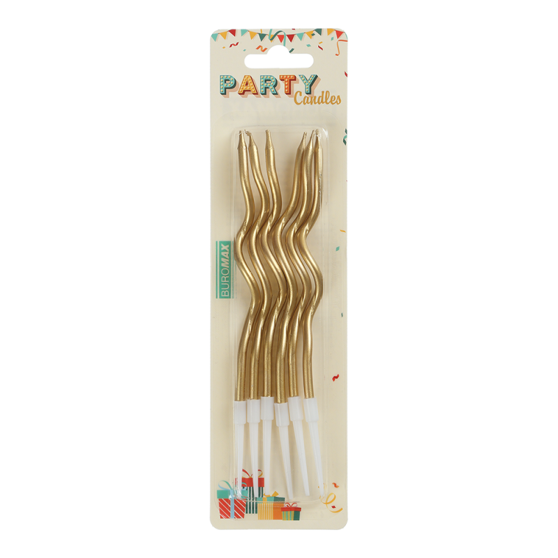 Свечи для торта от BUROMAX – это отличный способ подарить праздник, сделать праздник более ярким, незабываемым, подарить самые теплые эмоции. Такая свеча очень универсальна, подойдет для праздника как взрослых, так и детей. С помощью тортика со свечами можно отпраздновать не только день рождения, но и годовщину свадьбы, создание компании, годовщину обучения. 6 шт. Размер свечи: высота – 12 см, диаметр – 0,4 см В форме спирали Изготовлены из парафина Держатель (4,3 см длина) изготовлен из полипропилена - пластика, разрешенного для контакта с пищевыми продуктами Цвет свечей: золотой