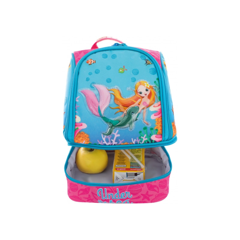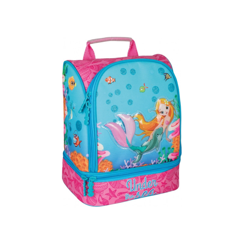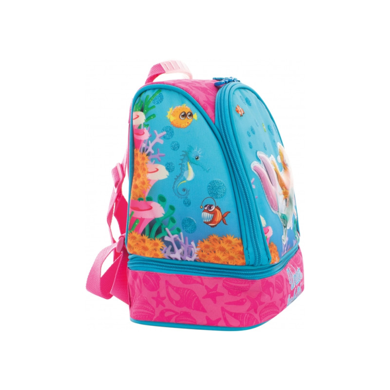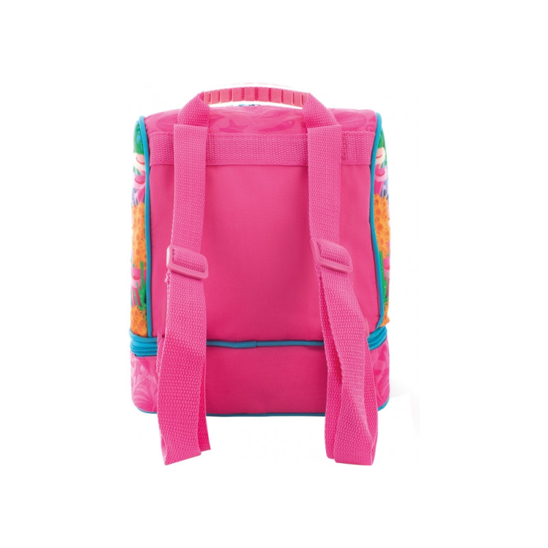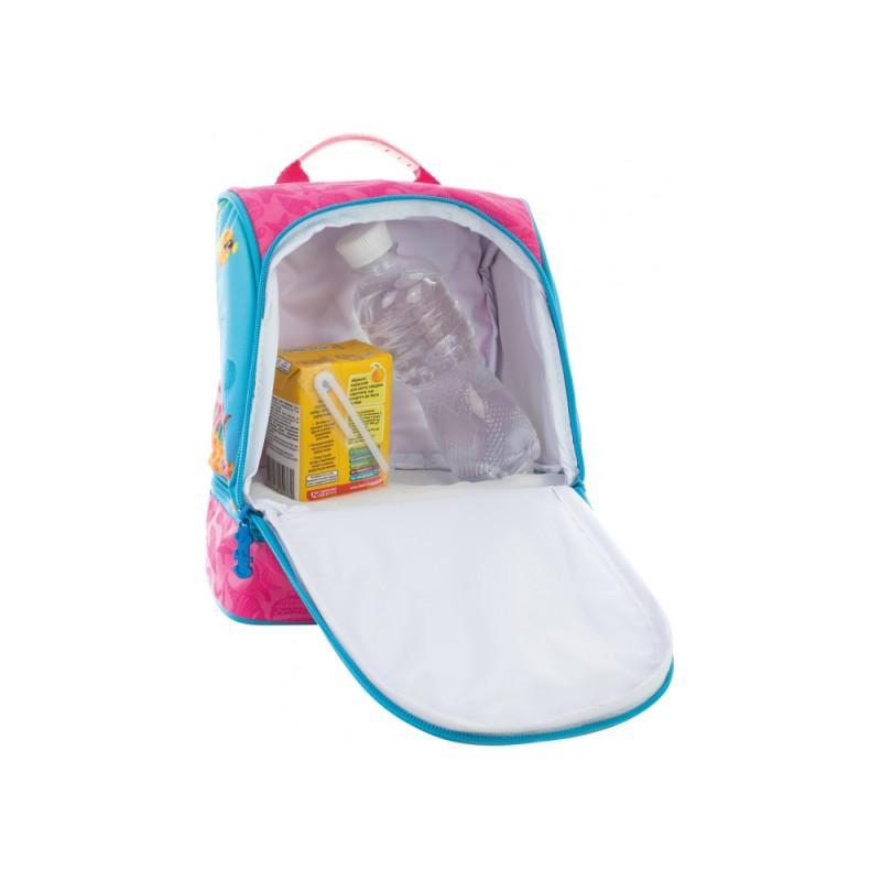 Размер 24*20*12 см; вес 250 г; материал: снаружи - полиестер 300 D, внутри - термоткань; крепкая ручка с резиновым чехлом; лямки регулируемые; 2 отделения: 1 общее и 1 для бутербродов; ярко оформленный дизайн ранца. Гарантия на производственный брак 60 дней.