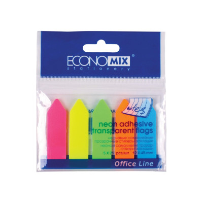Закладки с клейким слоем Economix - это закладка которая не выпадет из вашей книги или документа, пока вы сами не решите ее убрать. Клей не оставляет следов после отклеивания и позволяет неоднократно переклеивать листик. Закладки идиально подходят для выдиления информации. На закладке можно делать пометки. Асорти из 5 цветов дает возможность выделять отдельным цветом часть документа или отдельные страницы, что позволит удобнее работать с информацией. Особенно незаменимы при работе с оригиналами документов в которых нельзя делать пометки текстовим маркером или ручкой. Закладки поставляются на прозрачном пластиковом диспенсере который можно закрипить на блокноте или книге. Это позволяет удобно хранить и использовать весь блок не теряя отдельные цвета.
